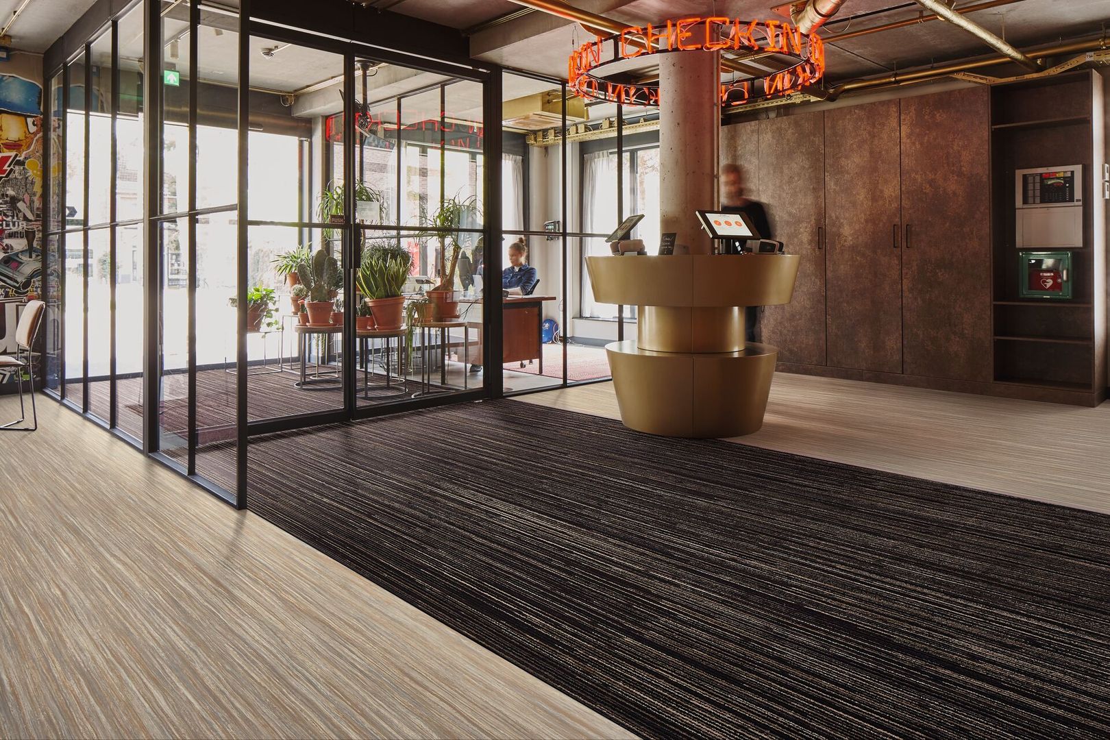 Das textile Sortiment für stark frequentierte Umgebungen dominieren innovative Produkte in Flock- und Drucktechnik sowie strapazierfähige Teppichfliesen, ergänzt um klassische Nadelvliesbeläge. Sauberlaufprodukte in Premiumqualität runden das Textilangebot ab.