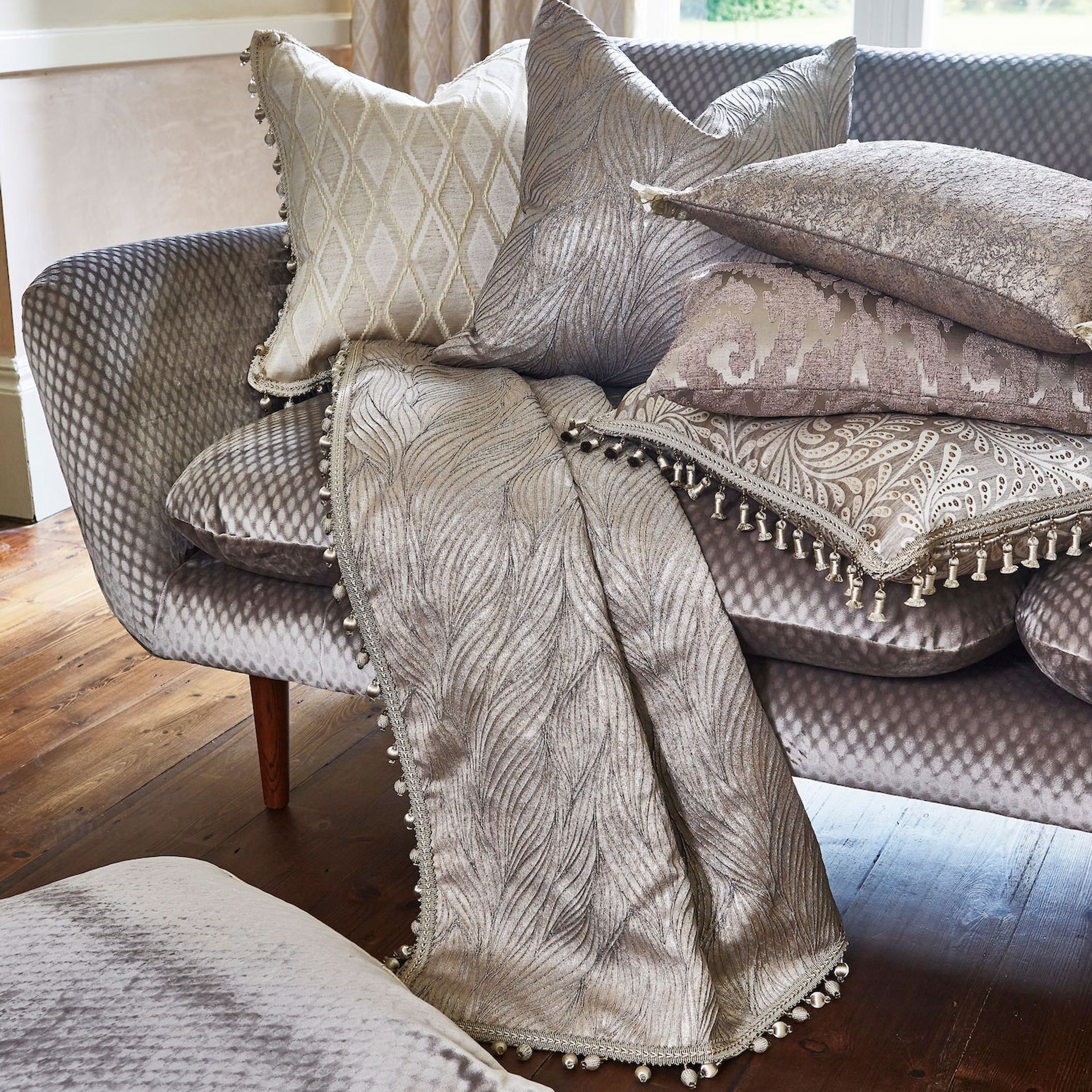 Über Geschmack lässt es sich bekanntlich nicht streiten. Deshalb reden wir auch gar nicht darüber. Vor allem kann sich der Geschmack auch ändern. Um nicht das ganze Sofa wechseln zu müssen, tauschen wir einfach den Stoff. Dafür gibt es ein paar grundsätzliche Qualitäts- und Designrichtlinien. Gemusterte Stoffe haben ihren besonderen Charme, eignen sich aber besonders gut als Solitär. Einerseits verzeihen Muster kleinere Verschmutzungen, andererseits braucht jede Ornamentik ihre Entsprechung und muss mit dem Rest des Raumes harmonieren.